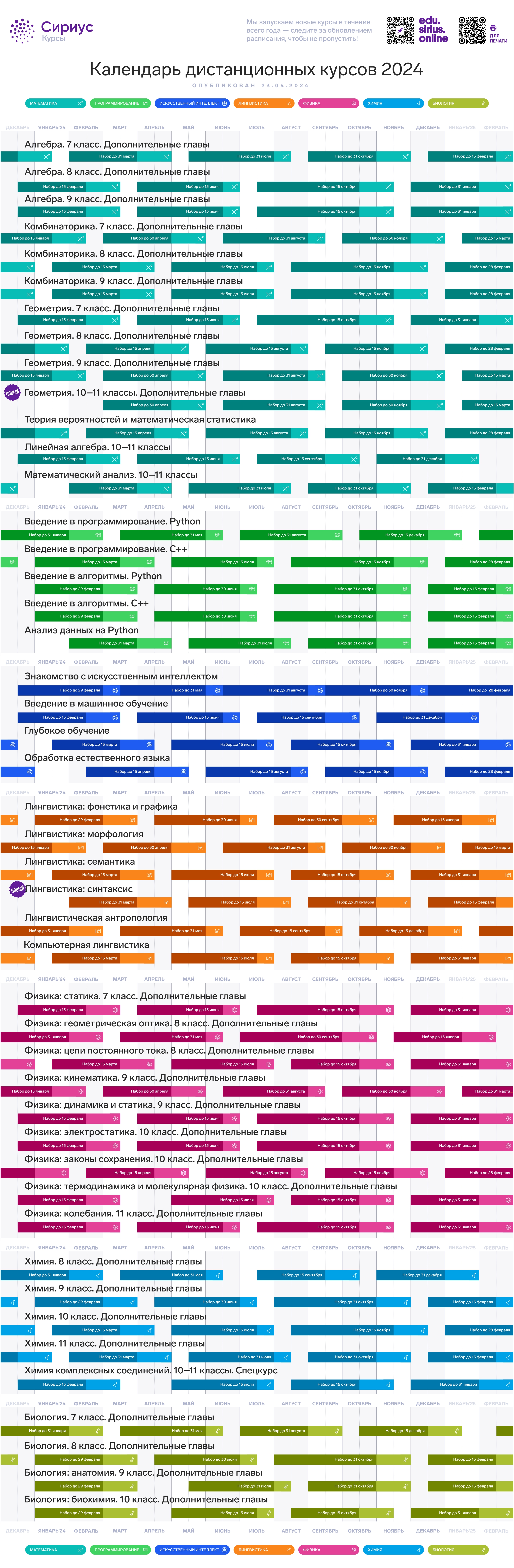 02.05.2024Онлайн-школа Сириус.Курсы опубликовала расписание курсовна 2024 год.