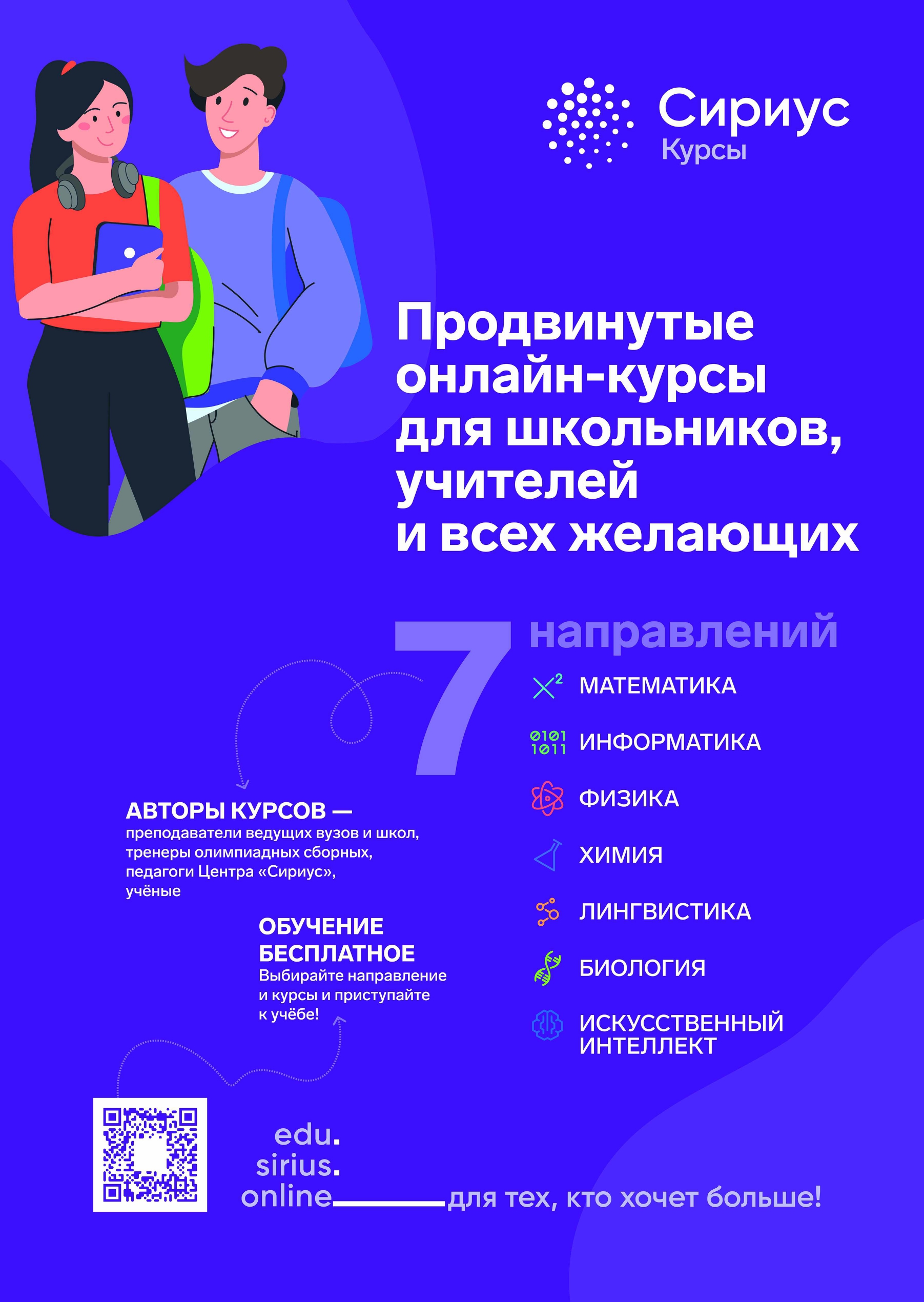 Команда авторов и методистов Сириус.Курсов продолжаетформировать полную линейку курсов по естественно-научным предметамс 7 по 11 класс. Все курсы разрабатываются в единой концепции,проходить их можно в удобном темпе, выстраивая собственнуюобразовательную траекторию.