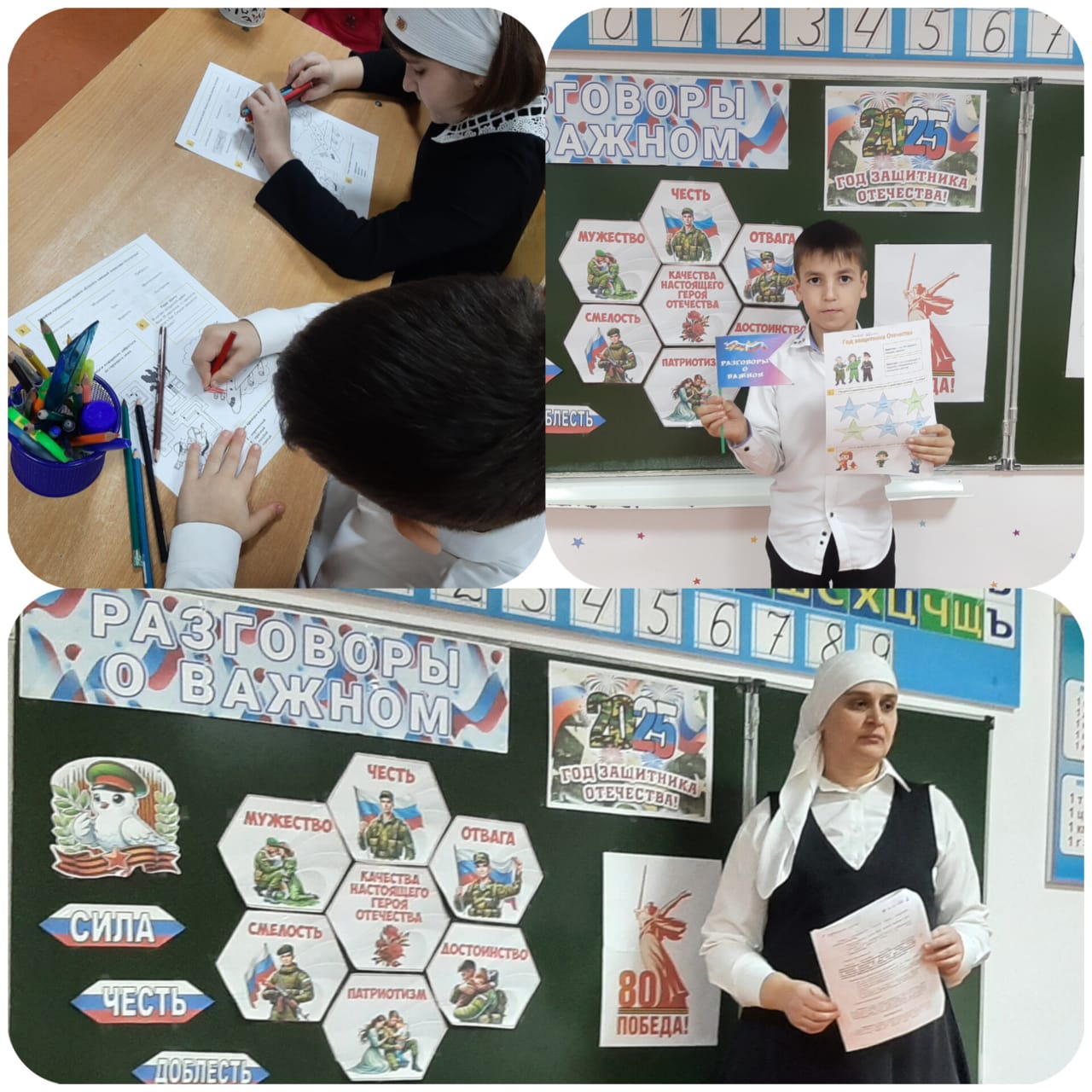 27.01.202527 января в МБОУ " Шелкозаводская СОШ" прошли внеурочные занятия из цикла: "Разговоры о важном" на тему: "Год Защитника Отечества".